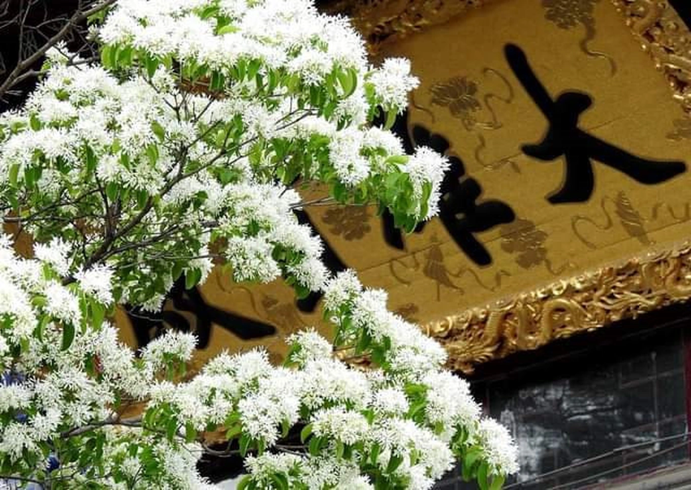 Cứ vào dịp tháng 4 hàng năm, khu thắng cảnh Kongwangshan ở thành phố Liên Vân Cảng, tỉnh Giang Tô, Trung Quốc, lại nhộn nhịp dòng khách tới tham quan. Điểm nhấn thu hút nhất là cây cổ thụ với tuổi đời hơn 830 năm nở hoa trắng muốt như tuyết ở giữa sân.