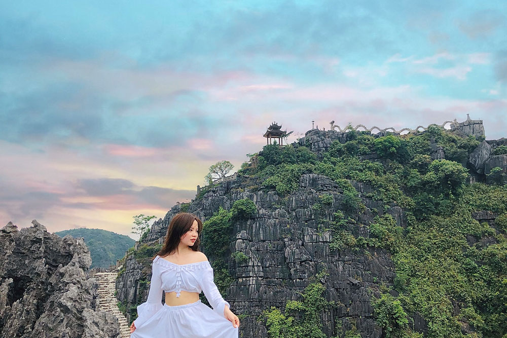 Cách Tràng An khoảng 15 phút lái xe, khu du lịch hang Múa nằm ngay dưới chân núi. Giá vé vào cổng 100.000 đồng/ người lớn. Nơi đây là địa điểm du khách thường check-in khi đến thăm Ninh Bình. Để lên được tới đỉnh Hang Múa, du khách sẽ phải leo bộ qua khoảng 500 bậc đá, trời khá nóng nên lưu ý mang theo nước. Từ đỉnh Hang Múa sẽ ngắm được toàn cảnh Ninh Bình tuyệt đẹp với những dòng sông uốn lượn, đồng lúa và núi non hùng vĩ. Du khách có thể dành khoảng 2 - 3 giờ lưu lại khu du lịch để tham quan, chụp hình.